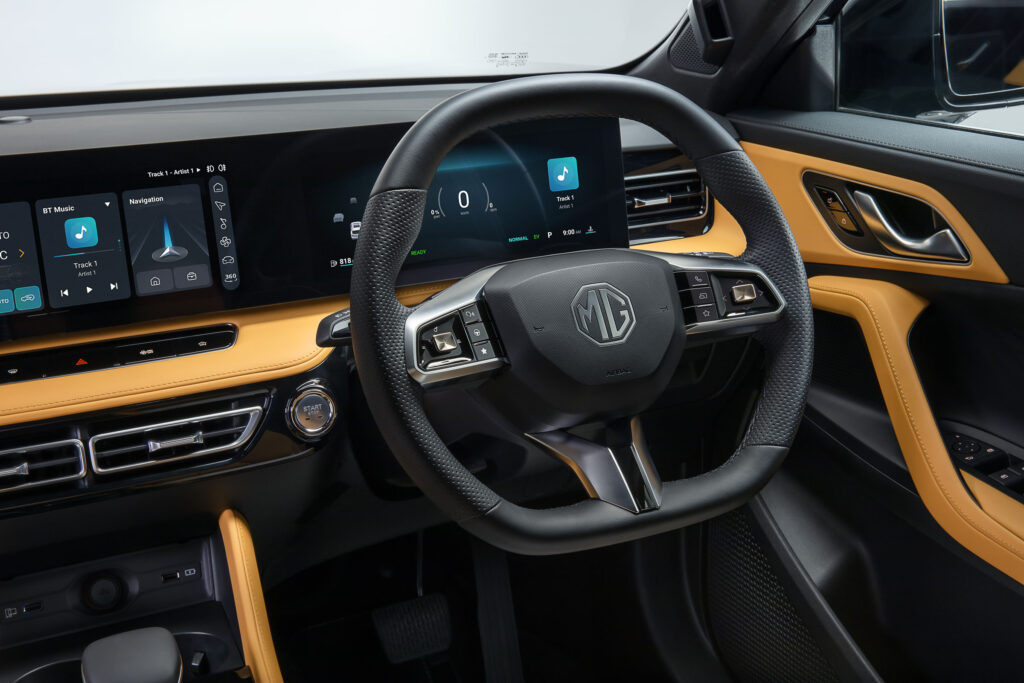 Interior Comfort: With increased dimensions, the MG HS offers a spacious cabin. The Trophy model includes dual-zone automatic air conditioning, heated front seats, and leather-style upholstery, enhancing overall comfort.
